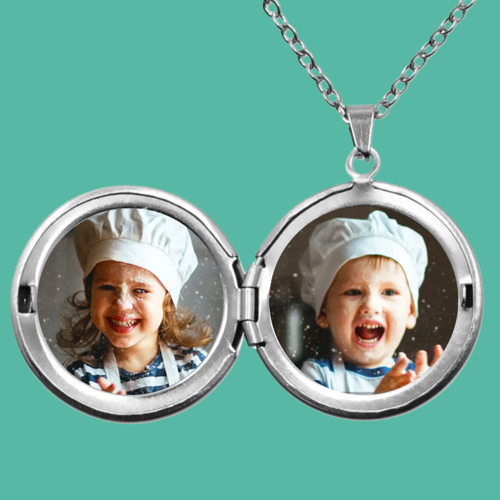 Collar Relicario Personalizado con 2 Fotografías – Modelo Redondo o Corazón