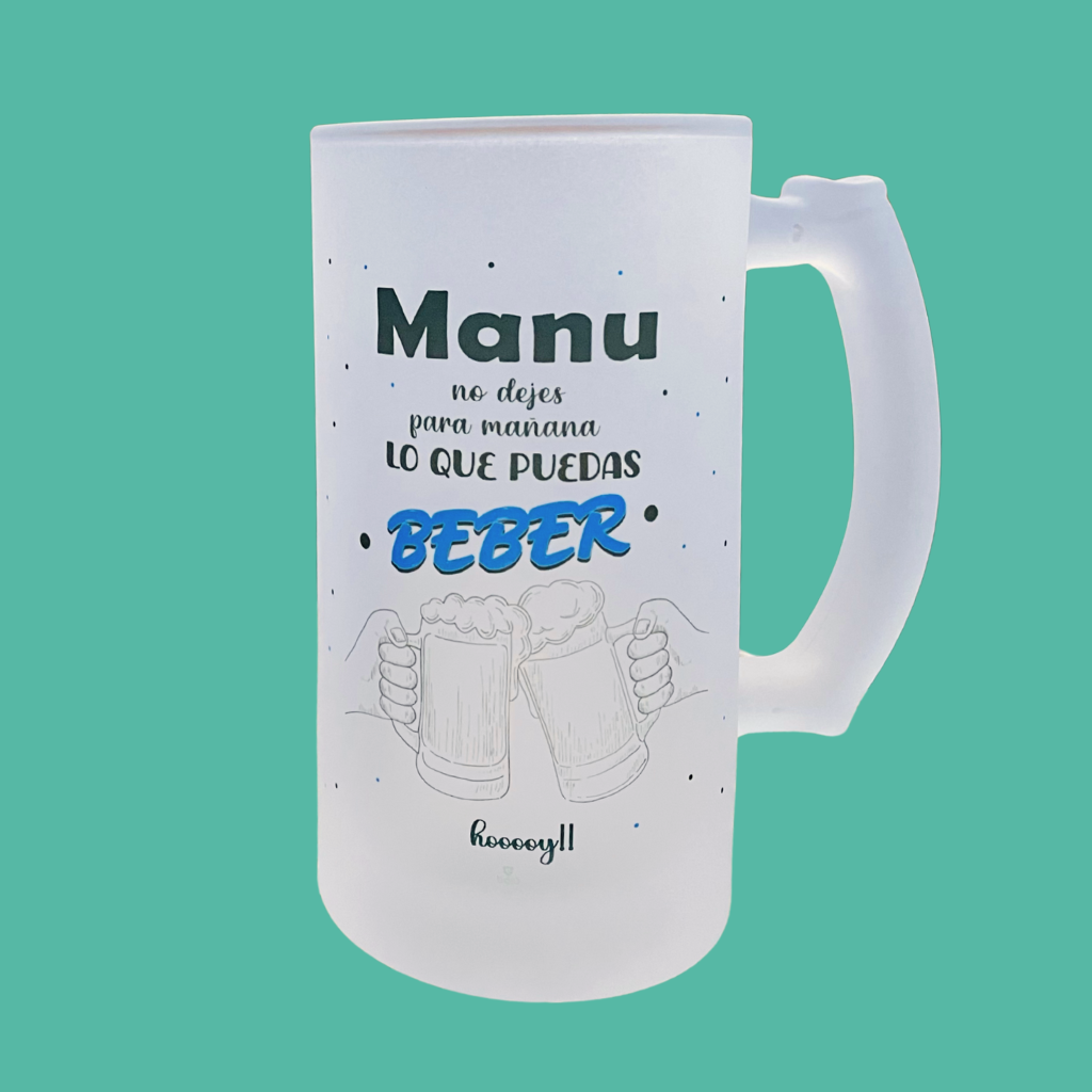 Convierte cada brindis en un momento único con nuestra jarra de cerveza esmerilada personalizada. Diseñada para sorprender, emocionar y arrancar sonrisas, es el regalo perfecto para los amantes de la cerveza... y de los buenos recuerdos.