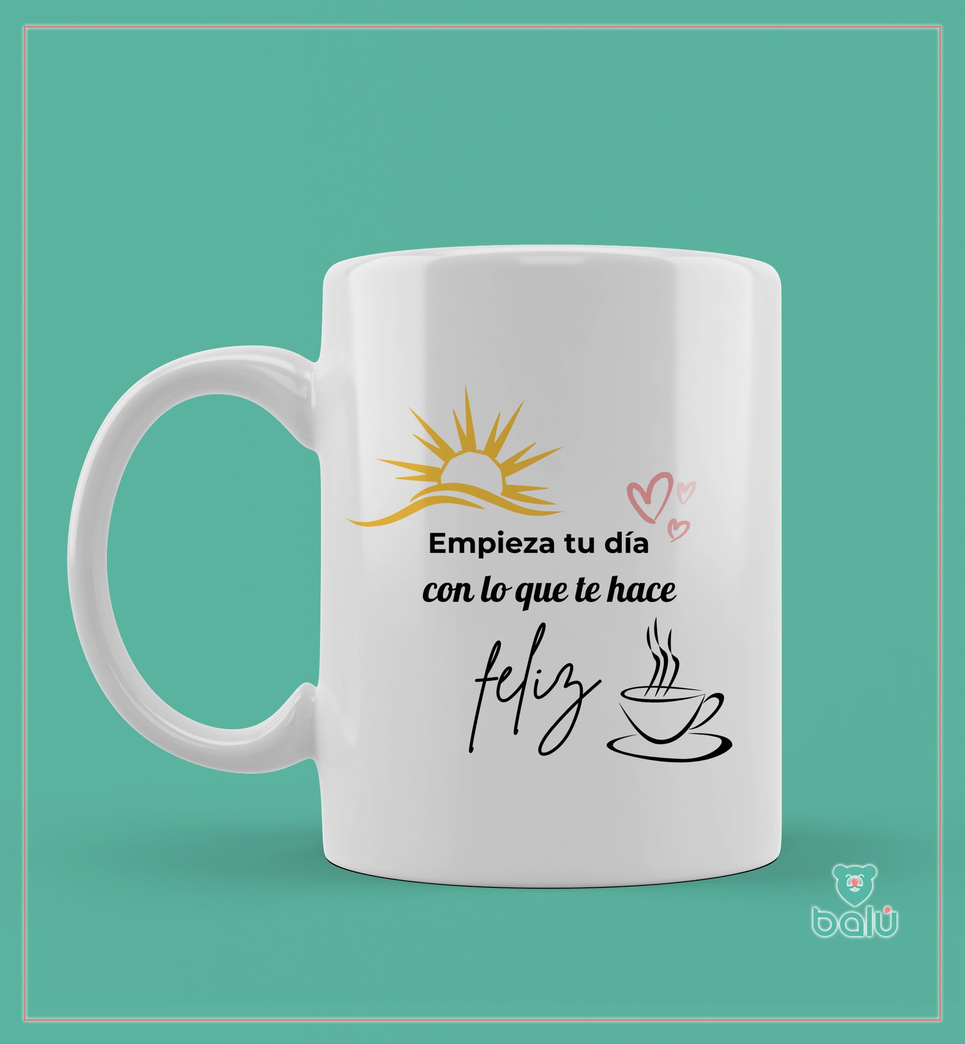 Taza cerámica "Taza empieza tu día con lo que te hace feliz!"